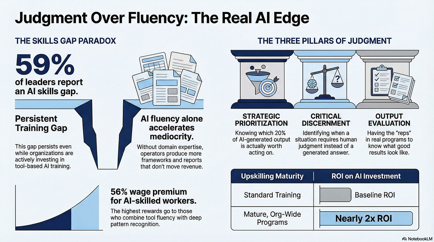 It’s investing in your own judgment. Getting reps in real programs. Building the domain depth that makes AI useful instead of dangerous in your hands.